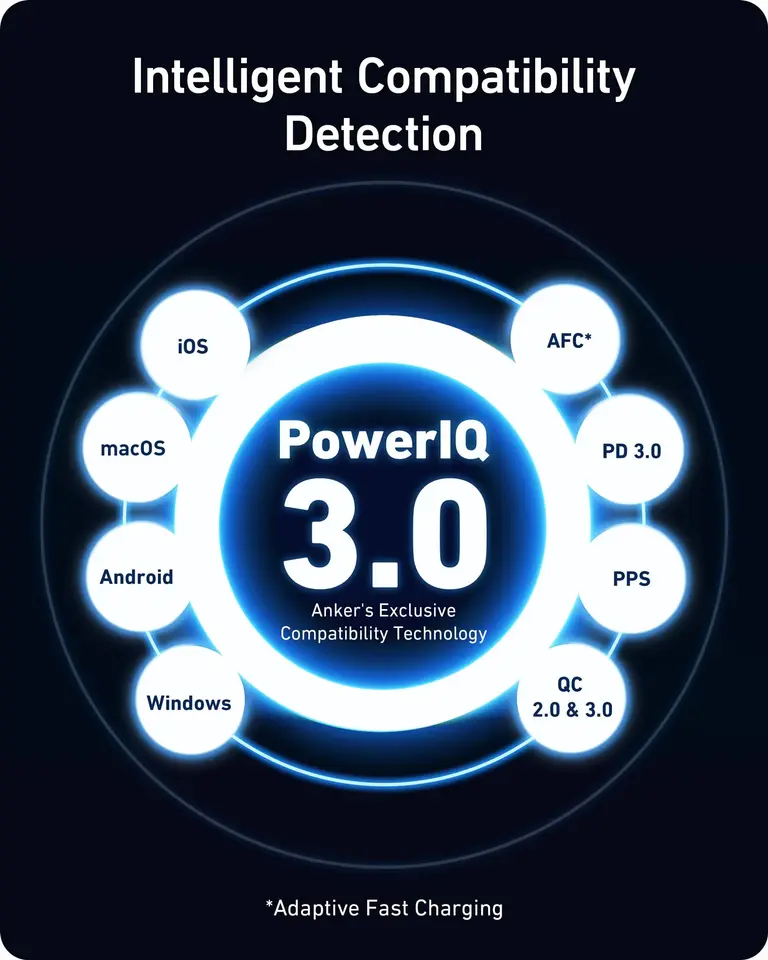 Anker’s exclusive PowerIQ 3.0 technology ensures compatibility with virtually any operating system or charging protocol, so no matter what device you connect, you’ll get the power you need.